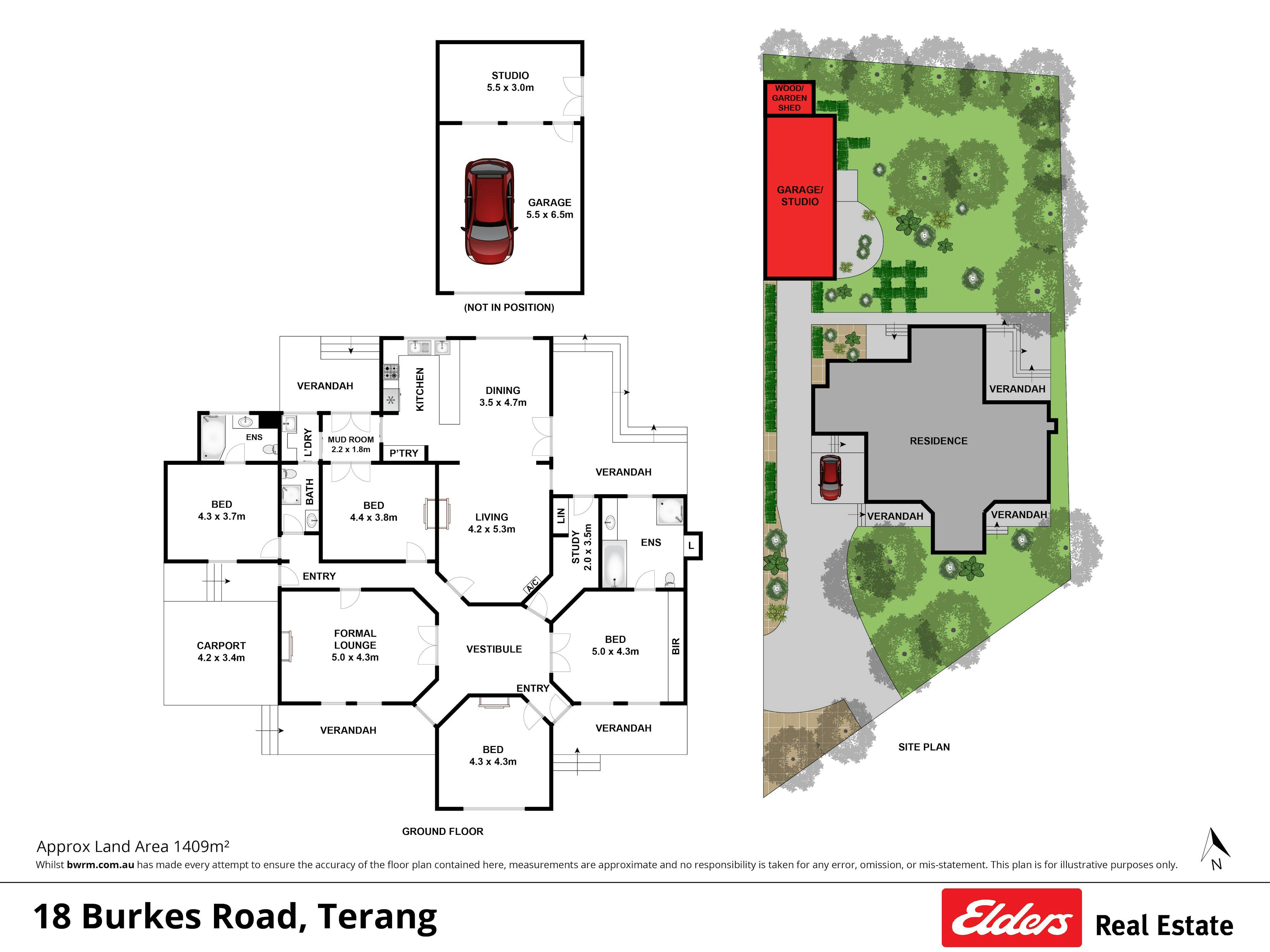 Outside, the property continues to impress with a large single garage featuring a studio/multi-purpose room, additional storage shed space, a separate carport and dedicated caravan parking bay, along with additional parking spaces.